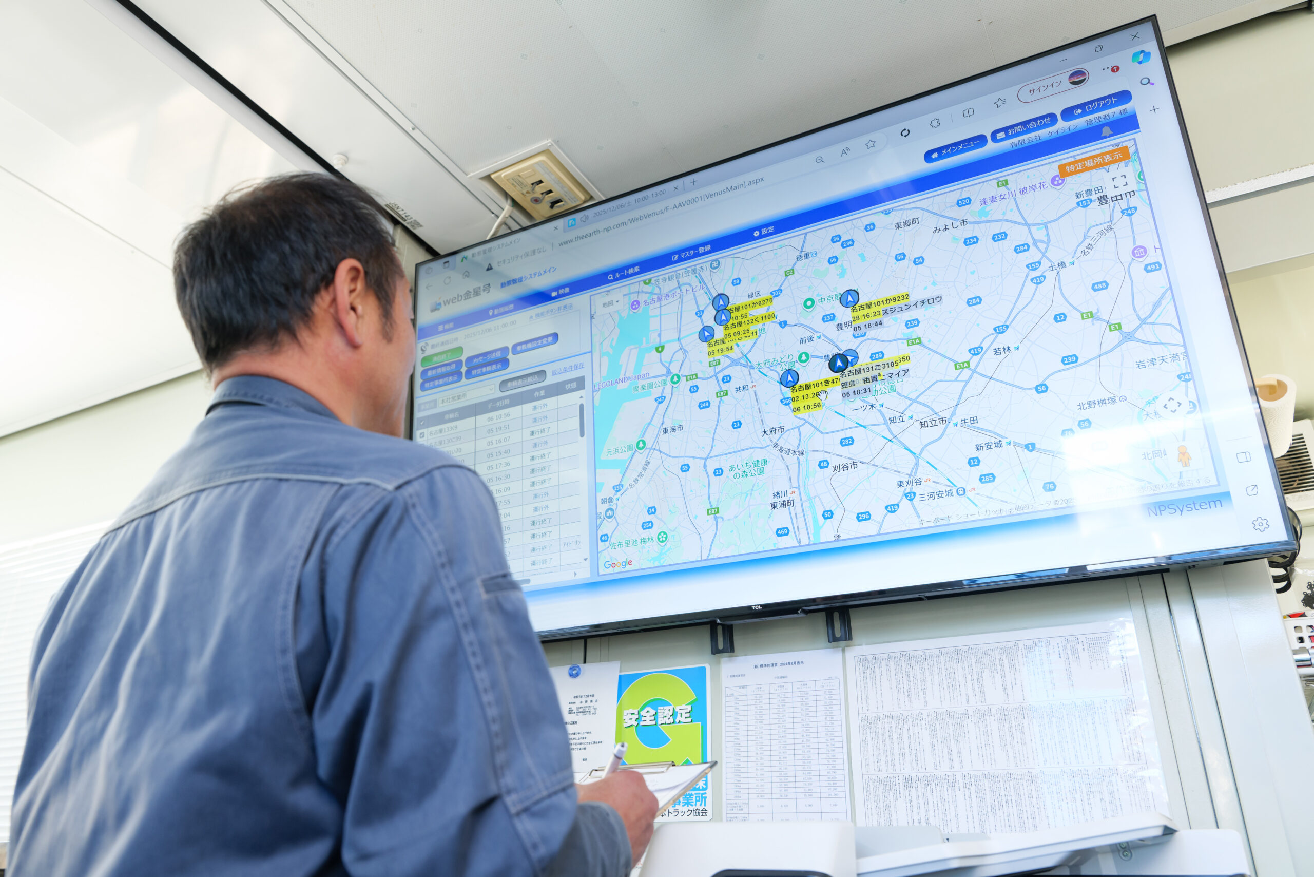 トラックが好きなドライバーにとって理想的な職場環境を整えています。自分だけの専用車をもち、過ごしやすい空間を自分で創ることができます。大型車やトレーラーを扱いながら、車輌ごとに丁寧に管理された運行体制の中で、安全・快適に仕事に取り組めます。